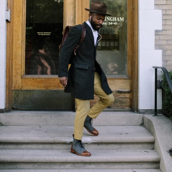 グレー/ブラウンのザ・ジャックをご紹介しよう。このブーツはすぐに私たちのシグネチャー商品となりました。カーフスキンのインナーライニングが100%のウールアッパーをサポートし、骨格を作ります。ソールユニットはレザーで、グリップ力と耐久性、快適性を高めるためにラバーが挿入されています。フォーマルな服装からカジュアルな服装まで、多目的に使えるブーツです。履いた瞬間から、その快適さと品質の高さがわかる。