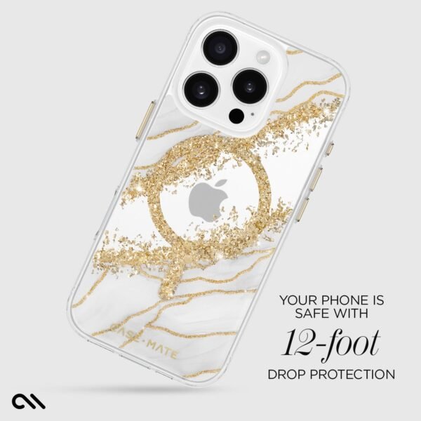 Keep it classy with the Karat Granite MagSafe Phone Case for the iP 16 Pro. Featuring white granite and gold accents for a modern twist on this timeless look. We know how much you love your phone. so feel confident knowing it’s safe with 12-foot drop protection while strong built-in magnets allow for easy MagSafe accessorizing and charging.