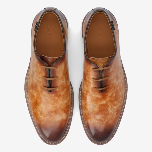 The Model 101 Shoe in Walnut byTAFT 365 is the epitome of refined elegance. These statement oxford shoes boast a hand-painted museum patina finish that ensures you stand out in any crowd. Crafted from genuine leather in a seamless whole-cut pattern. they blend durability with sophistication. The custom TAFT comfort outsole and an extra insole for sizing adjustment guarantee comfort. Elevate your style with the Model 101. where luxury meets practicality. making it the ideal choice for any smart and sleek outfit.
