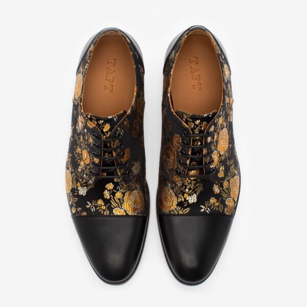 Meet The Jack Shoe in Eden Noir. This shoe is comfortable. built to last. and guaranteed to get compliments. The sole unit is leather with rubber inserts for added grip. durability. and comfort. This is a versatile shoe that will take you from formal attire to casual wear in elevated style. Stand out from the crowd in art you can wear.