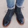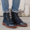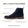 Meet the Troy boot in Navy…your new party boot. The perfect balance of sleek and rugged. this boot is a new variation on our classic Jack boot. With an incredibly substantial suede and a full leather lining. the Troy boot is as durable as it is comfortable. It features a reinforced. stacked leather sole with rubber inserts. As always. we spared no expense and opted for the highest quality materials available. The Troy Boot in Navy features gold details and highlights in the leather lining. the eyelets. and the tips of the laces. Wear this boot when you want to get attention.